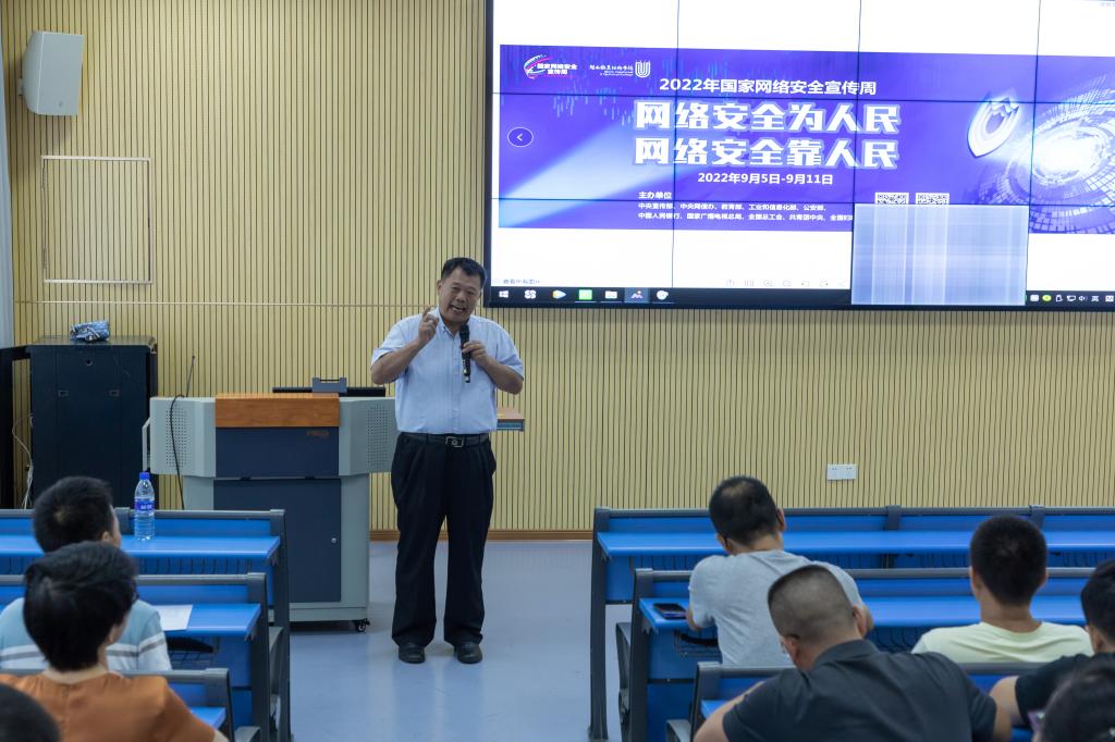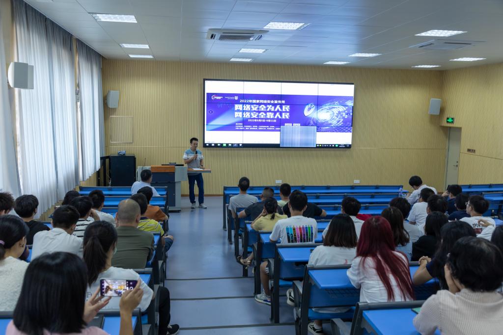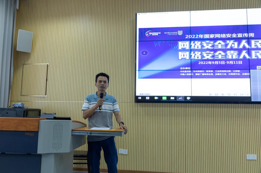 刘路永为启动仪式致辞,他用身边的具体事例向师生们介绍了当前的网络环境,以及我们个人重要数据的保护、网络安全保障等问题,让老师们和同学们更好地了解和感知了身边的网络安全风险,增强了网络安全意识。