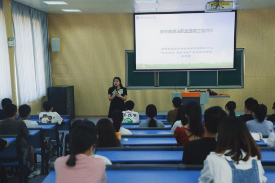 对标我校“双高”建设和提质培优任务,紧紧围绕立德树人根本任务,探索实践“三维”育人体系建设,各二级学院融合专业特色创设班主任工作室。城乡建筑学院“法安校园 法护成长”班主任工作室积极开展一系列班级普法活动,新版职业教育法律宣讲是近期宣讲的重要内容。9月17日上午,2021级工程造价3班全体学生以及我校法律援助服务中心“法助成长”宣讲团成员,在望云楼阶二教室聆听了一场生动的法治教育讲座。主讲人是班主任工作室负责人——马克思主义学院副教授罗芳香老师。