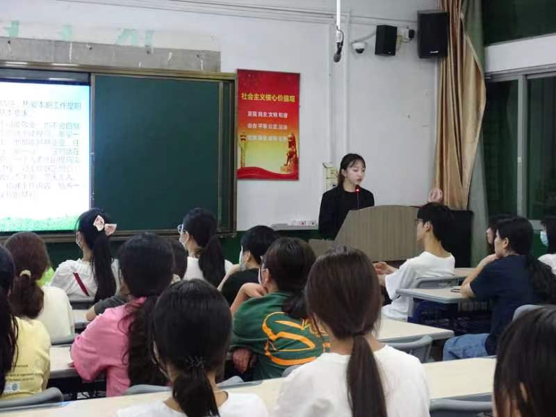 在不同的场次中,宣讲团的同学们满怀激情,结合宣讲新生的专业将普法内容个性化定制,为学弟妹们倾心奉献涵盖职业道德和职业教育法的专题教育,将严肃的法理化成温暖的关爱传递给他们。