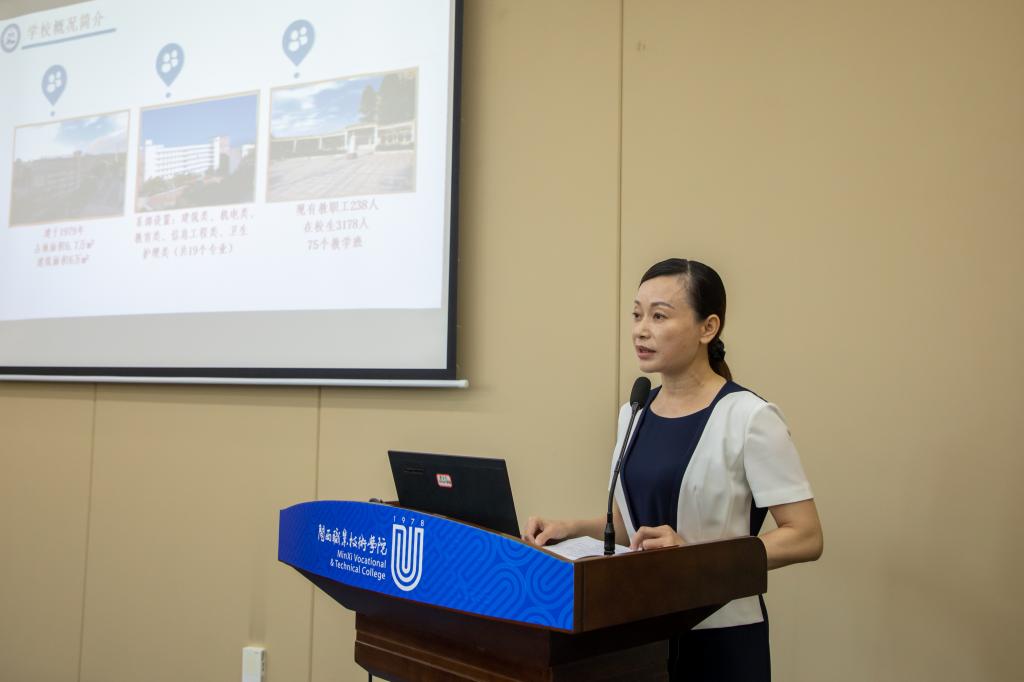 龙岩华侨职专、上杭职专、长汀职专、龙岩农校分别做了相关工作情况介绍,龙岩市建筑装修行业协会、福建德尔科技股份有限公司先后发言,介绍了校企合作典型经验。