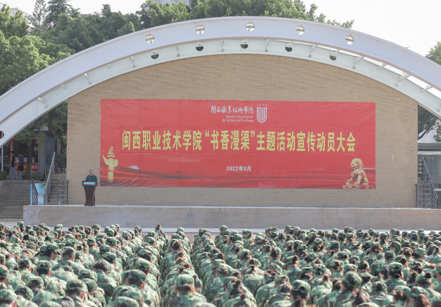 根据校党委卢伟耀书记、梁俊平校长“要把‘书香漫渠’主题活动融入到军训活动”的指示要求和军训工作安排,2022年9月27日上午,无码人妻AV一二区二区三区“书香漫渠”主题活动宣传动员大会在田径运动场举行。动员大会由宣传部、安全保卫处和图书馆共同组织,来自全国各地的近5000名新生参加了宣传动员大会。动员大会由刘路永副校长主持。