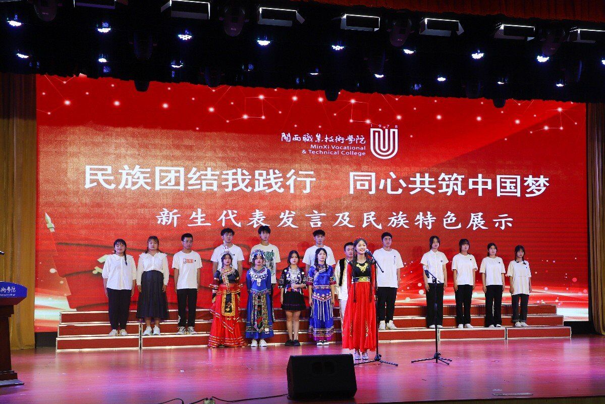 开学典礼前学生代表进行了歌曲串烧、来自各省份的新生代表发言及民族特色展示,把整个开学典礼烘托成为校园的励志舞台。