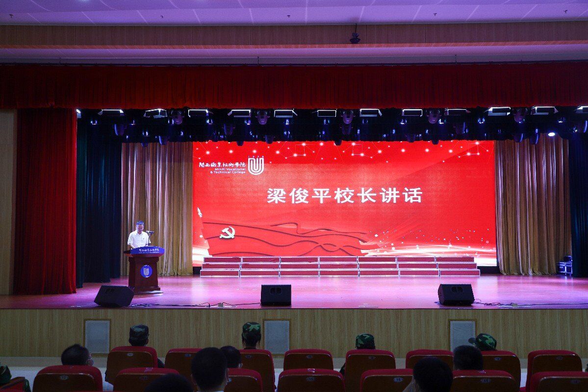 梁俊平校长在开学典礼上对2022级新生的到来表示热烈欢迎,在充分肯定新生在军训期间的表现的同时提出三点希望:一是希望同学们赓续闽西红土基因,传承老区精神苏区精神,争做心系“国家事”、肩扛“国家责”的闽大红土学子;二是希望同学们勤学笃行,德技并修,用学习延展人生的深度,用奋斗成就能工巧匠、大国工匠的高度,争做知行合一的的工匠之才;三是希望同学们向阳而立,执善向上,懂感恩,知感恩,学会宽容,与同学友好相处,培养健康兴趣,陶冶高尚情操,争做“一技在手的新时代阳光工匠”。