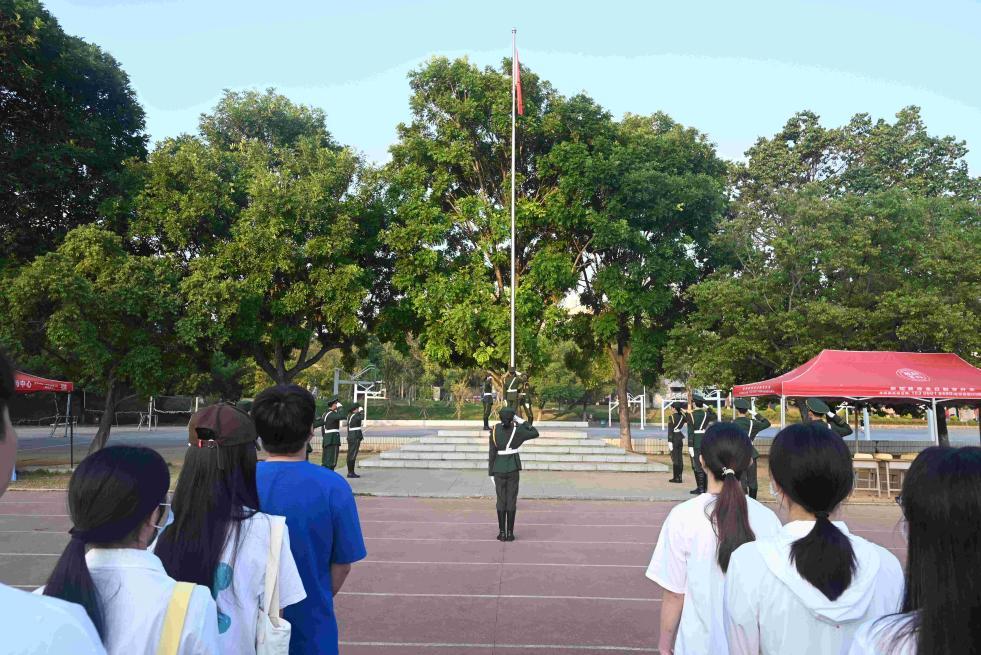 清晨6:40点整,迎着温暖和煦的阳光,护旗手们护送国旗来到国旗台前,伴随着国歌响起,升旗手扬起国旗、摇起手柄,国旗冉冉升起。参与升国旗的全员心怀崇敬,目光坚毅,庄严肃穆地注视国旗升起,目送国旗攀升至旗杆顶端。校(学生)团委书记助理黄佳文和校团结里青年志愿服务队主席黄境镕分别作了国旗下讲话。