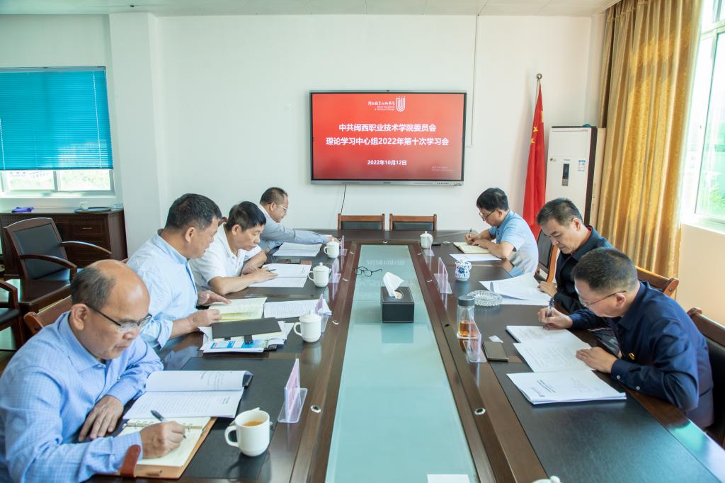 10月12日上午,校党委理论学习中心组召开2022年第十次集体学习会,认真学习贯彻习近平总书记为《复兴文库》所作序言,认真学习教育部等十部门印发《全面推进“大思政课”建设的工作方案》,认真学习尹力书记在纪念福建省苏维埃政府成立90周年大会上的讲话。校党委书记卢伟耀主持学习会,校党委委员、副校长刘路永作“全面推进落实‘大思政课’建设,创新育人模式,实现大思政教育新突破”专题发言,中心组成员围绕学习内容进行讨论交流。