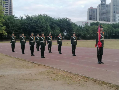 清晨,同学们迎着朝霞,沐浴着温暖和煦的阳光,齐聚田径场国旗台下。上午6:40整,护旗手迈着自信的步伐护送国旗到位,伴随着国歌响起,升旗手昂首挺胸,扬起国旗,摇起手柄,国旗在300多双目光的注视下冉冉升起。全员目光坚毅,齐唱国歌,目送国旗缓缓上升,感到无比地自豪和荣耀。