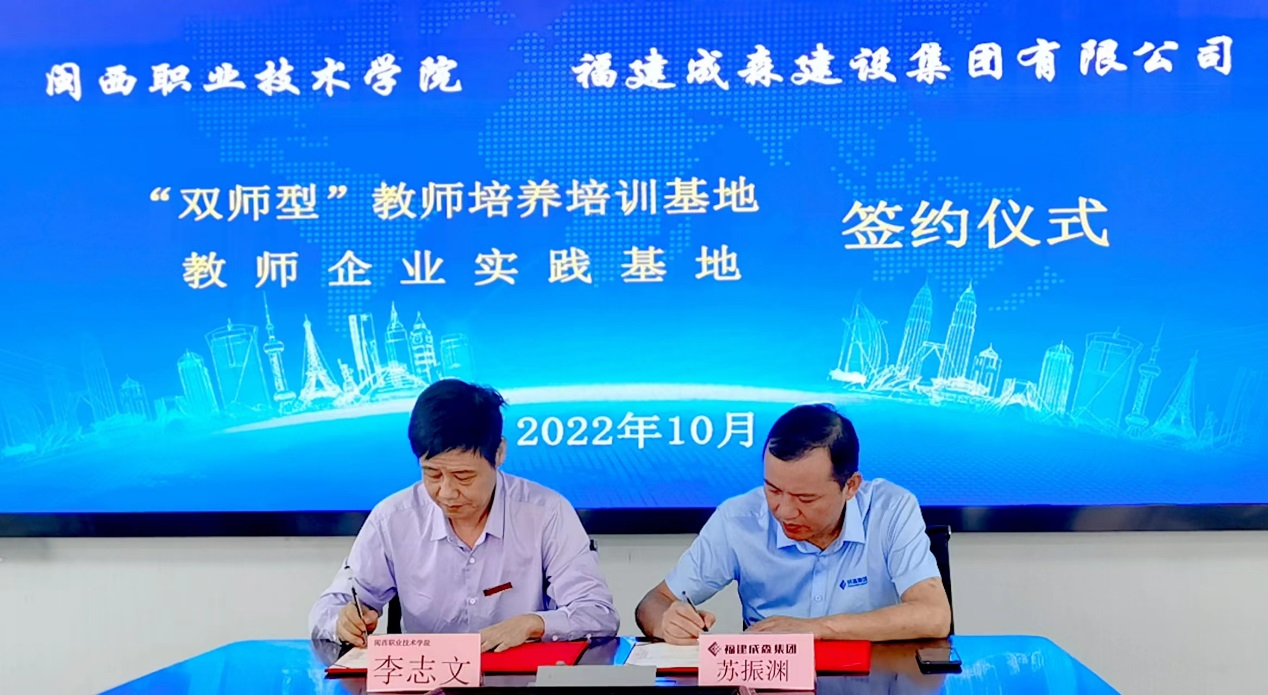 10月14日,城乡建筑学院与福建成森建设集团有限公司举行“双师型”教师培养培训基地、教师企业实践基地签约、授牌仪式。校企双方领导班子成员参加。