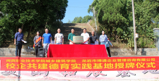 10月15日,在新罗区苏坂镇美山采茶灯研学基地,城乡建筑学院与龙岩市博通企业管理咨询有限公司签订校企共建德育实践基地协议,举行授牌、挂牌仪式。