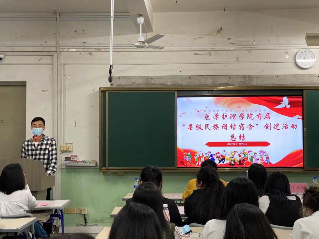 为进一步推进少数民族学生教育管理服务工作,铸牢中华民族共同体意识,充分发挥宿舍在营造校园民族团结氛围的重要作用,11月26日晚上,医学护理学院“石榴籽”训导师工作室成功举办首届星级民族团结宿舍评比活动。