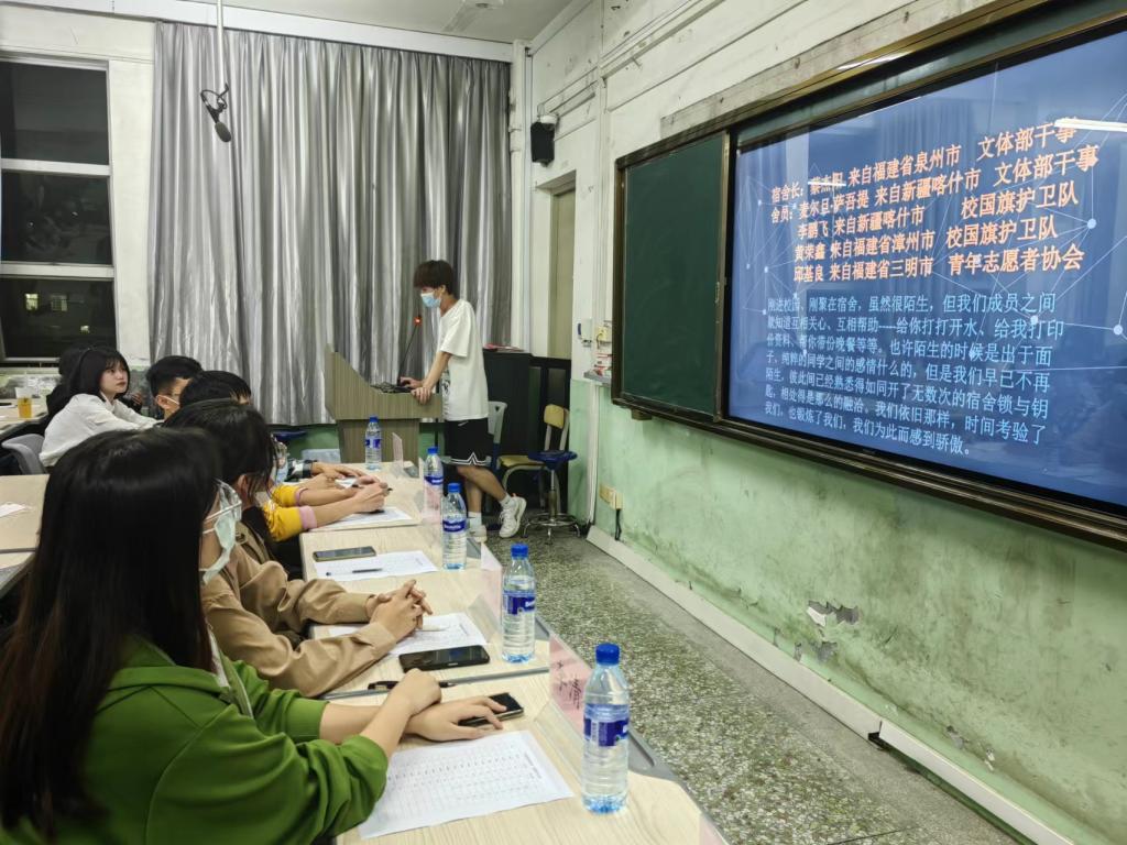 参与评比的20个宿舍代表结合“民族团结进步”这一主题,通过分享丰富多彩的宿舍活动,分别从学习、生活、兴趣爱好等方面充分展现宿舍特色,展现温馨和睦的宿舍氛围,更体现了民族团结、民族进步的精神。22级黄荣鑫同学说“感谢住宿生活,让我在闽大遇到大家”,温馨小家建设引发在座同学的思考和共鸣。不少宿舍代表在现场用土家族、畲族、维吾尔族的民族语言、歌曲和同学们进行欢快地互动交流,活动现场掌声雷动,笑语喧扬。