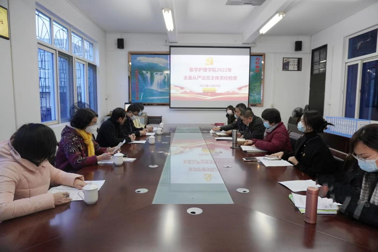 为全面压实压紧从严治党主体责任,12月20日上午,我校2022年度全面从严治党主体责任落实情况检查组到医学护理学院进行检查指导工作。
