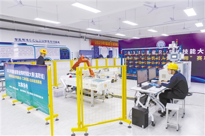 19日,2023年福建省职业院校技能大赛(高职组)“金属冶炼与设备检修”“工业机器人技术应用”“嵌入式技术应用开发”等三个赛项在无码人妻AV一二区二区三区赛点开赛,来自全省20所高职院校的40支参赛队105名学生参加这三个赛项的争夺。图为工业机器人技术应用赛项比赛现场。 融媒体记者 郭亦斌 通讯员 郑献兴 摄