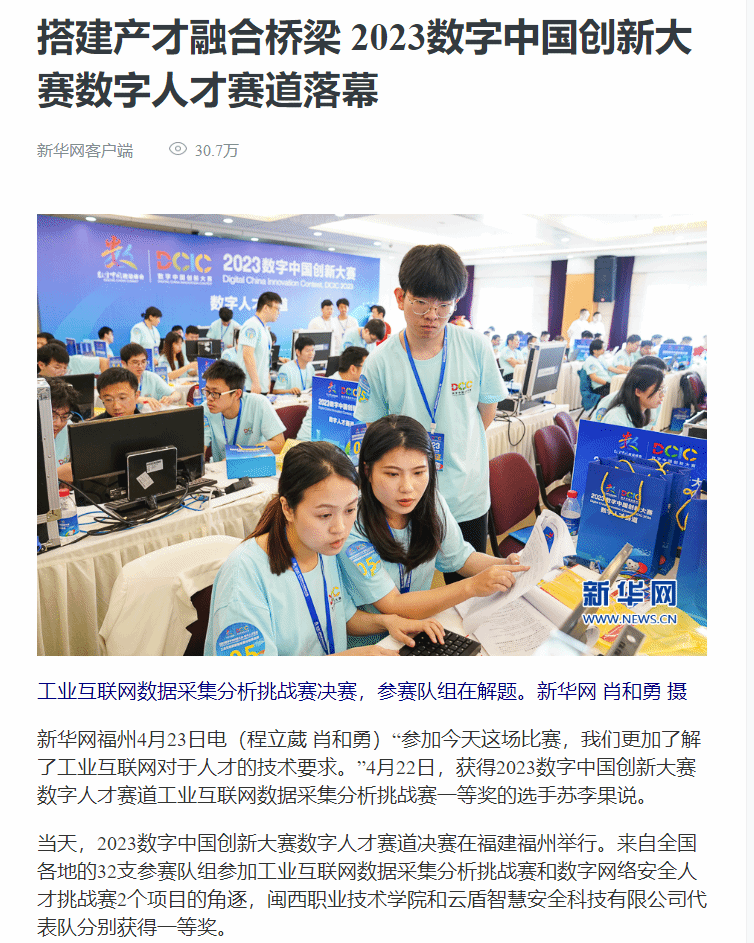 当天,2023数字中国创新大赛数字人才赛道决赛在福建福州举行。来自全国各地的32支参赛队组参加工业互联网数据采集分析挑战赛和数字网络安全人才挑战赛2个项目的角逐,无码人妻AV一二区二区三区和云盾智慧安全科技有限公司代表队分别获得一等奖。