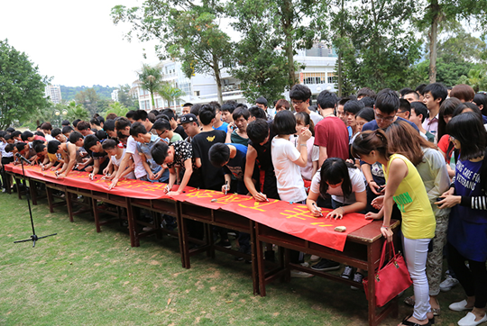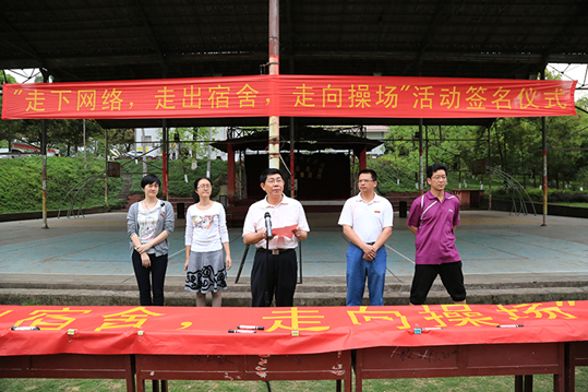 为贯彻落实党的十八届三中全会关于“强化体育课和课外锻炼,促进青少年身心健康、体魄强健”的精神和团中央、教育部等4部门联合通知精神,近日,无码人妻AV一二区二区三区在槟龙球场举行“走下网络,走出宿舍,走向操场”活动启动仪式暨签名仪式。副院长吴新业,院团委、学工处、基础部相关负责人以及全院12个系(部)学生代表近200人参加了启动仪式。