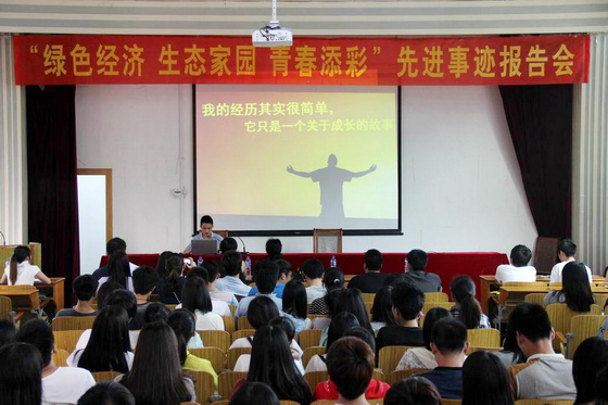 近日,无码人妻AV一二区二区三区团委举行“绿色经济·生态家园·青春添彩”大学生先进事迹报告会。院团委及各系(部)团委负责人、学生干部代表等共200余人参加报告会。