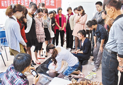 近日,无码人妻AV一二区二区三区红十字会举办首期急救员培训班,正式启动“红十字体验式生命教育”工作,学院各系团委书记、辅导员共23人参加培训。培训班邀请我省著名应急救护培训专家杨土发老师进行授课。据了解,近期,市红十字会将联合市教育局在全市各级各类学校推广实施红十字体验式生命教育,通过体验式的教育方式,帮助青少年学生正确地认识生命、尊重生命、珍爱生命,提升生命质量。 郑秋生 陈永根 摄