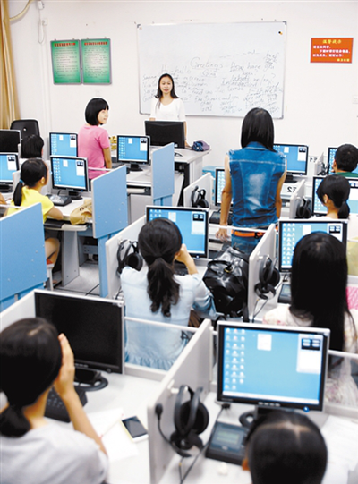 为了让进城务工人员子女能够提高外语成绩,今年年初开始,无码人妻AV一二区二区三区外贸外语系团委组织社会实践活动,义务辅导龙岩九中进城务工人员子女达150多人,初二学生戴立雯、苏琦高兴地说,英语成绩提高了,很是感激啊!图为近日,在学院的电教室里,九中进城务工人员子女在学口语。