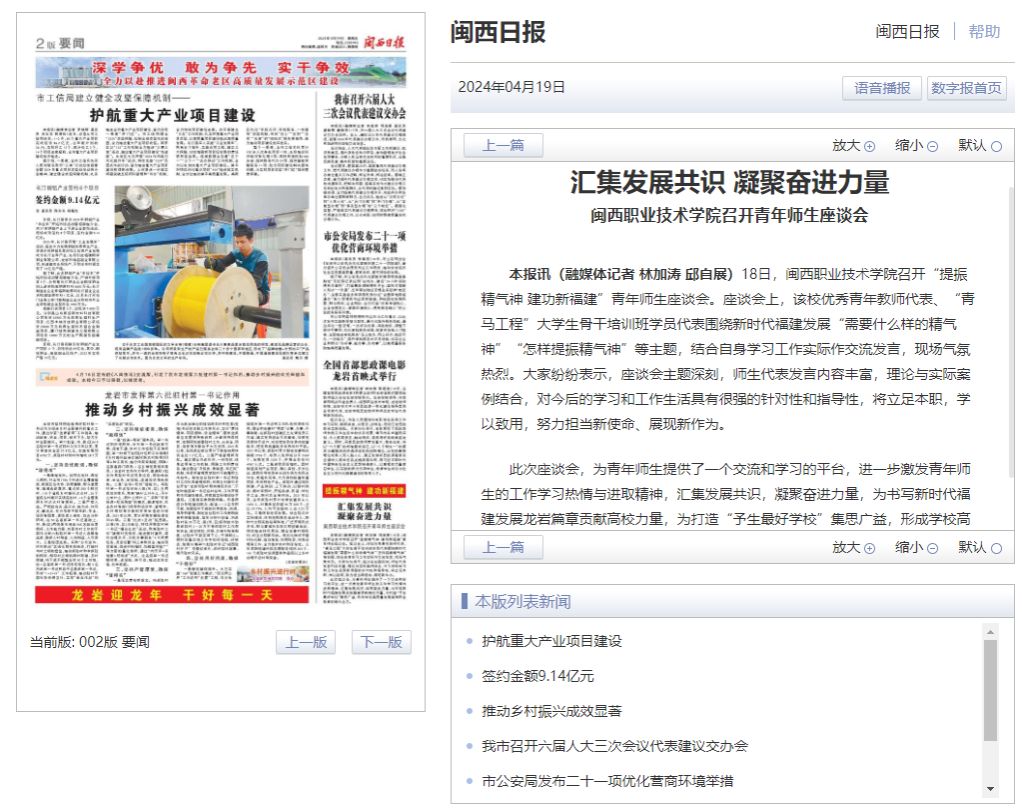 此次座谈会,为青年师生提供了一个交流和学习的平台,进一步激发青年师生的工作学习热情与进取精神,汇集发展共识,凝聚奋进力量,为书写新时代福建发展龙岩篇章贡献高校力量,为打造“予生最好学校”集思广益,形成学校高质量发展高等职业教育的强大合力。