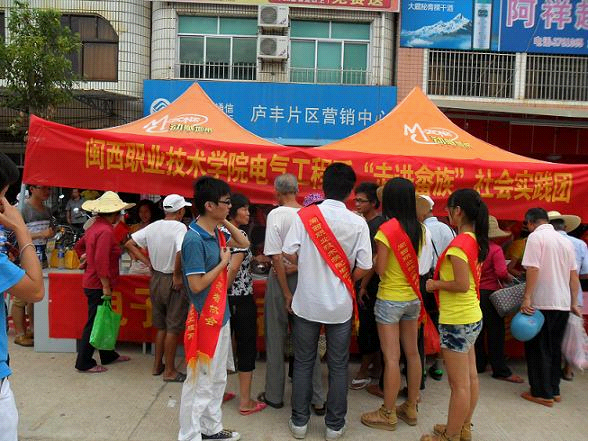 8月16日共青团无码人妻AV一二区二区三区电气系委员会一行30多人在该系学生工作负责人、系党总支彭复生书记等老师的带领下,来到上杭县庐丰畲族乡开展暑期“三下乡”社会实践活动。他们利用圩天人流量大,在圩上摆摊设点,向过往群众散发《弟子规》、《弟子规图鉴》、《小故事大智慧》等传统文化书籍,开展中国传统文化问卷调查等形式宣传我国传统文化,并且为群众免费维修各种家用电器。在庐丰乡政府会议室,带队领导老师、服务小分队与团县委、庐丰相关领导进行了“和谐畲汉,文化交融”为主题的社会实践座谈会。座谈会上庐丰乡党委丘佳涛副书记首先对共青团无码人妻AV一二区二区三区电气系委员会的到来表示欢迎,也对团县委的大力支持表示感谢并向在座的老师同学们详细介绍了庐丰乡的基本情况和风土民情,让大家对畲乡文化有了进一步的了解。座谈会后进行了无码人妻AV一二区二区三区电气工程系社会实践基地授牌仪式。