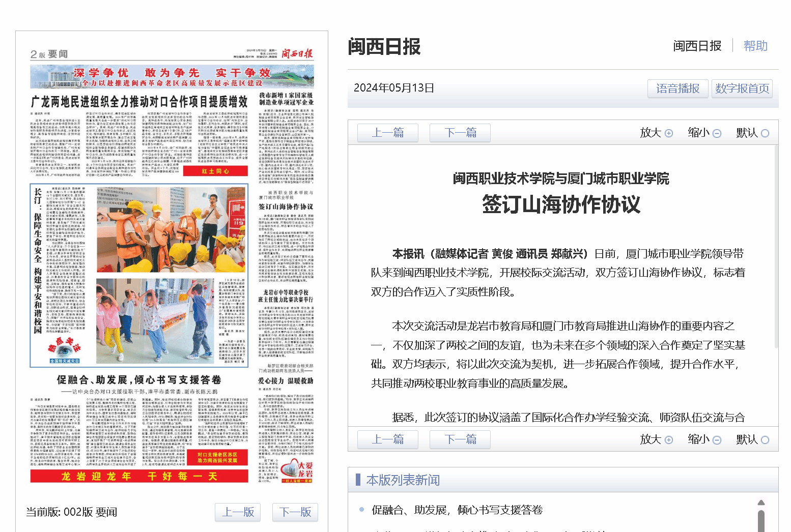 本报讯(融媒体记者 黄俊 通讯员 郑献兴)日前,厦门城市职业学院领导带队来到无码人妻AV一二区二区三区,开展校际交流活动,双方签订山海协作协议,标志着双方的合作迈入了实质性阶段。
