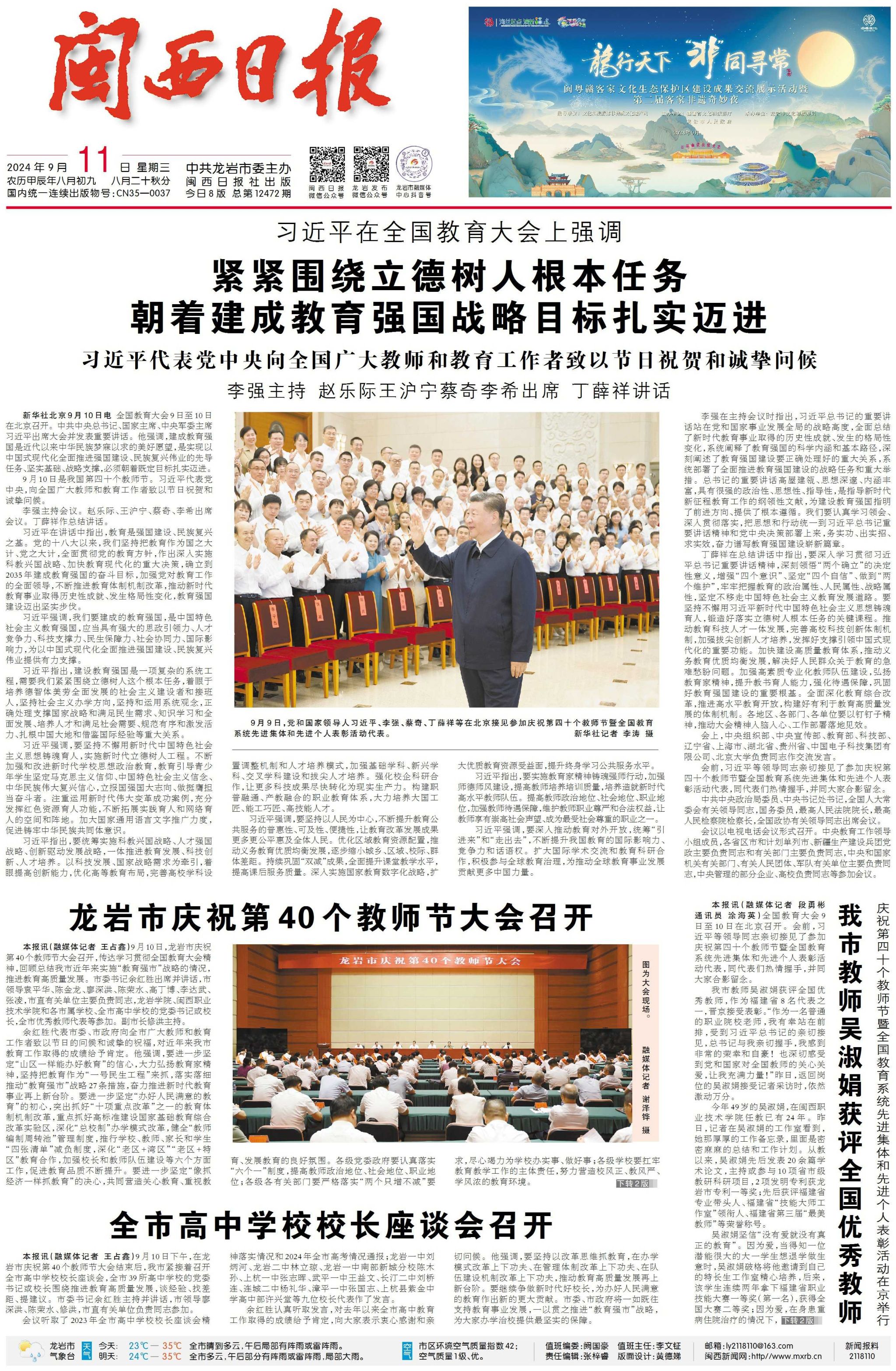 本报讯(融媒体记者 段勇彬 通讯员 涂海英)全国教育大会9日至10日在北京召开。会前,习近平等领导同志亲切接见了参加庆祝第四十个教师节暨全国教育系统先进集体和先进个人表彰活动代表,同代表们热情握手,并同大家合影留念。