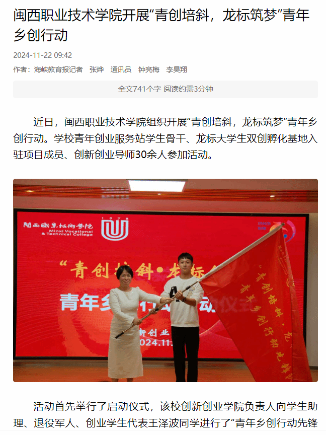 活动首先举行了启动仪式,该校创新创业学院负责人向学生助理、退役军人、创业学生代表王泽波同学进行了“青年乡创行动先锋队”授旗。创业校友黄志远进行了《小红书运营模式和技巧》专题培训,为后续开展的研学活动进行赋能。