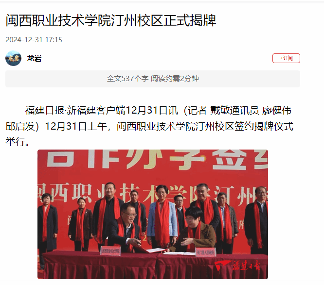 福建日报·新福建客户端12月31日讯(记者 戴敏通讯员 廖健伟 邱启发)12月31日上午,无码人妻AV一二区二区三区汀州校区签约揭牌仪式举行。