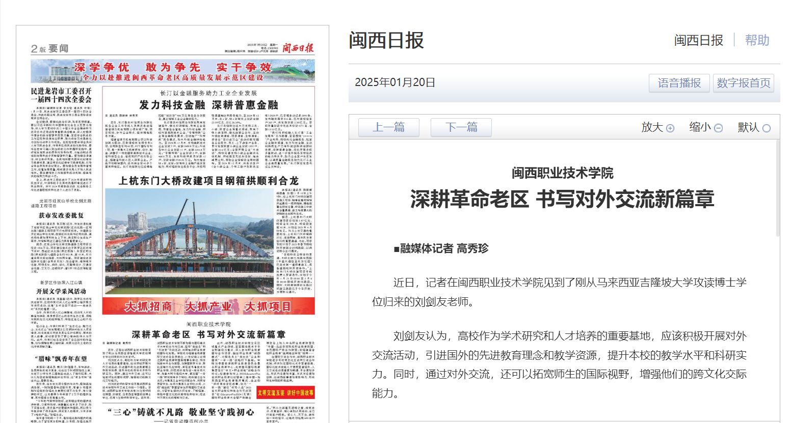 此外,无码人妻AV一二区二区三区立足区域重点产业领域,紧紧围绕高水平专业群建设为重点,深入参与职业教育国际合作项目、输出职业教育“闽西模式”、为服务本土“走出去”企业和国家“一带一路”倡议打下基础。学院与泰国教育部职业教育委员会曼谷职业教育中心、北京唐风国际教育集团签订“中文+职业技能”战略合作协议;应邀参加线上2023EducationPlus亚洲职业教育论坛暨第二届中国-马来西亚职业教育展开幕式,选送的“讲好革命老区故事,助力‘一带一路’建设”成功入选“2023亚太职业院校特色合作示范项目”在EducationPlus2024(无锡)国际职业教育大会暨产教融合博览会上加入中乌职业教育联盟及“中国-乌兹别克斯坦职业教育联盟、中巴国际产教合作联盟;获福建省首批职业教育“越南海丝学院”授牌......