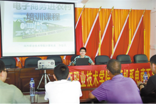 当日上午,在培田村党支部会议室,计算机系党员电商下乡服务队为当地农民开展电子商务培训。