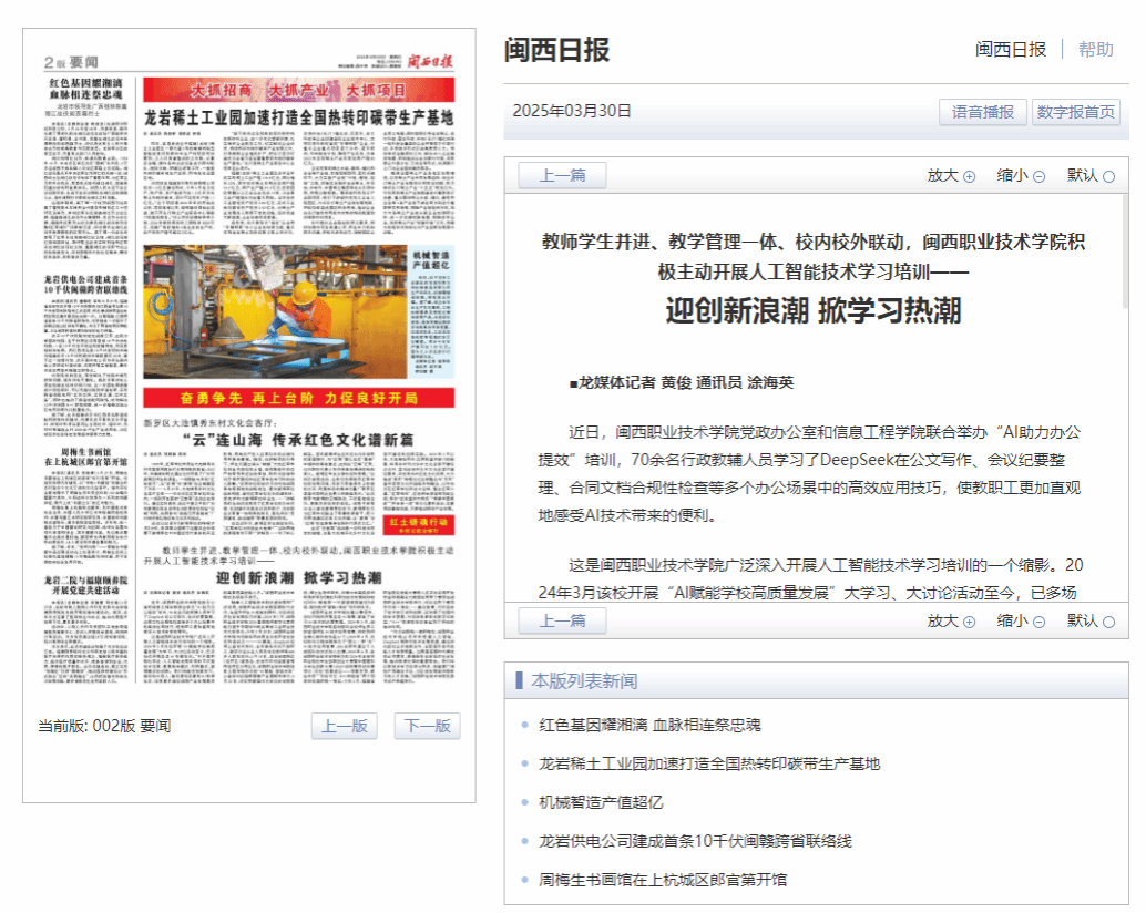 “作为闽西唯一高职院校,无码人妻AV一二区二区三区必须牢牢把握人工智能、DeepSeek等新兴技术发展机遇,通过深化政校企多维度合作,全面提升技术技能人才培养质量。这既是紧跟时代潮流的必然要求,更是服务龙岩经济社会发展、推动教育改革的重要使命。我们将以新技术学习应用为抓手,构建更广阔的产教融合平台,为区域发展提供强有力的人才支撑。”无码人妻AV一二区二区三区党委书记卢伟耀表示。