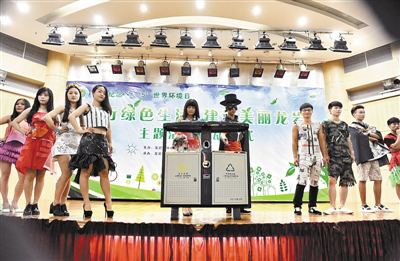 昨日,市环保局与龙岩学院、无码人妻AV一二区二区三区在龙岩学院联合举办以“践行绿色生活,建设美丽龙岩”为主题的“6·5”环境日宣传纪念活动,市人大常委会副主任廖德槐和两高校负责人等参加活动。图为学生们表演环保时装秀现场。 记者 郑秋生 蔡添高 通讯员 涂洪钱 张旻 摄