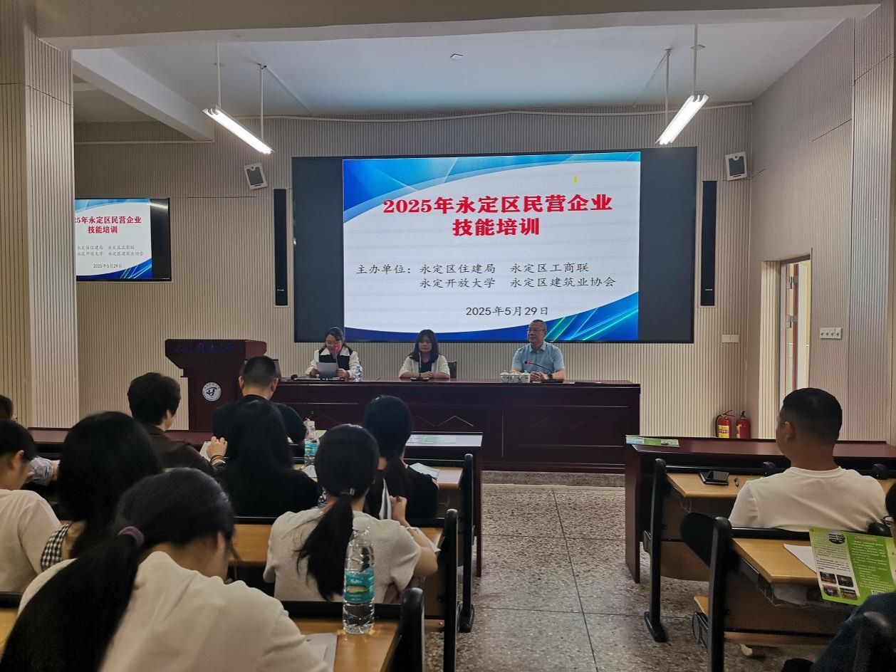 5月29日上午,永定区工商联联合区住建局、区开放大学、区建筑业协会举办2025年永定区民营企业技能培训,进一步加强民营企业技术人员队伍建设,提高民营经济人士素质,增强民营企业核心竞争力。