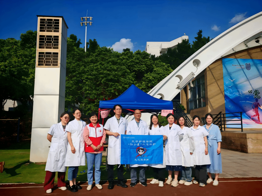 为确保赛事安全有序,“红小医”团队赛前做足准备,配备防暑药品、冰袋、急救包等物资。比赛当日,队员们身着统一标识的白色马甲,化身“健康守护者”,在烈日下坚守岗位,随时观察选手状态。