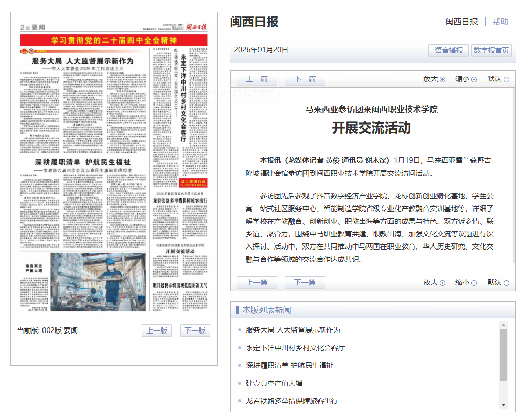参访团先后参观了抖音数字经济产业学院、龙标创新创业孵化基地、学生公寓一站式社区服务中心、智能制造学院省级专业化产教融合实训基地等,详细了解学校在产教融合、创新创业、职教出海等方面的成果与特色。双方诉乡情、联乡谊、聚合力,围绕中马职业教育共建、职教出海、加强文化交流等议题进行深入探讨。活动中,双方在共同推动中马两国在职业教育、华人历史研究、文化交融与合作等领域的交流合作达成共识。