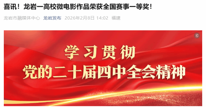 上一条:【闽西日报】龙岩一高校微电影获全国一等奖