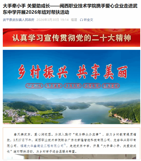 此次结对帮扶活动,是武东镇深化校地合作、汇聚社会力量助力乡村教育的重要举措。下一步,武东镇将持续搭建爱心帮扶平台,凝聚更多社会资源,为乡村学子成长成才保驾护航,让教育之花在武东大地绽放得更加绚丽。