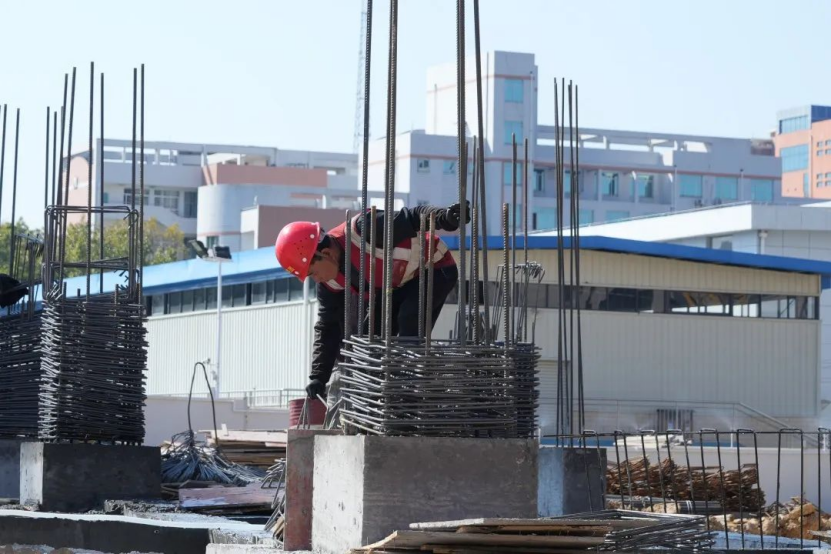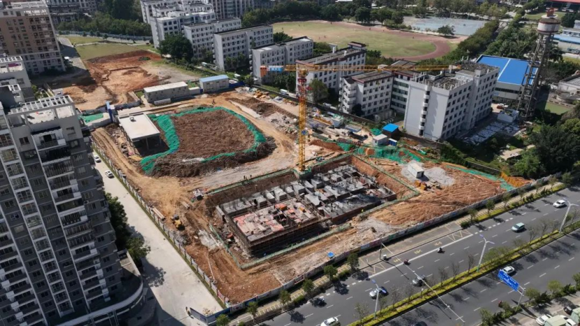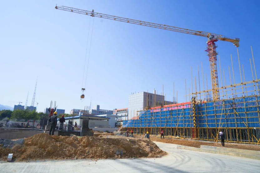 目前,三期C地块1号楼正进行一层柱、二层梁板的施工,2号楼已完成地基施工;二期D地块已完成配电房主体工程,正进行学生公寓楼地下室施工。