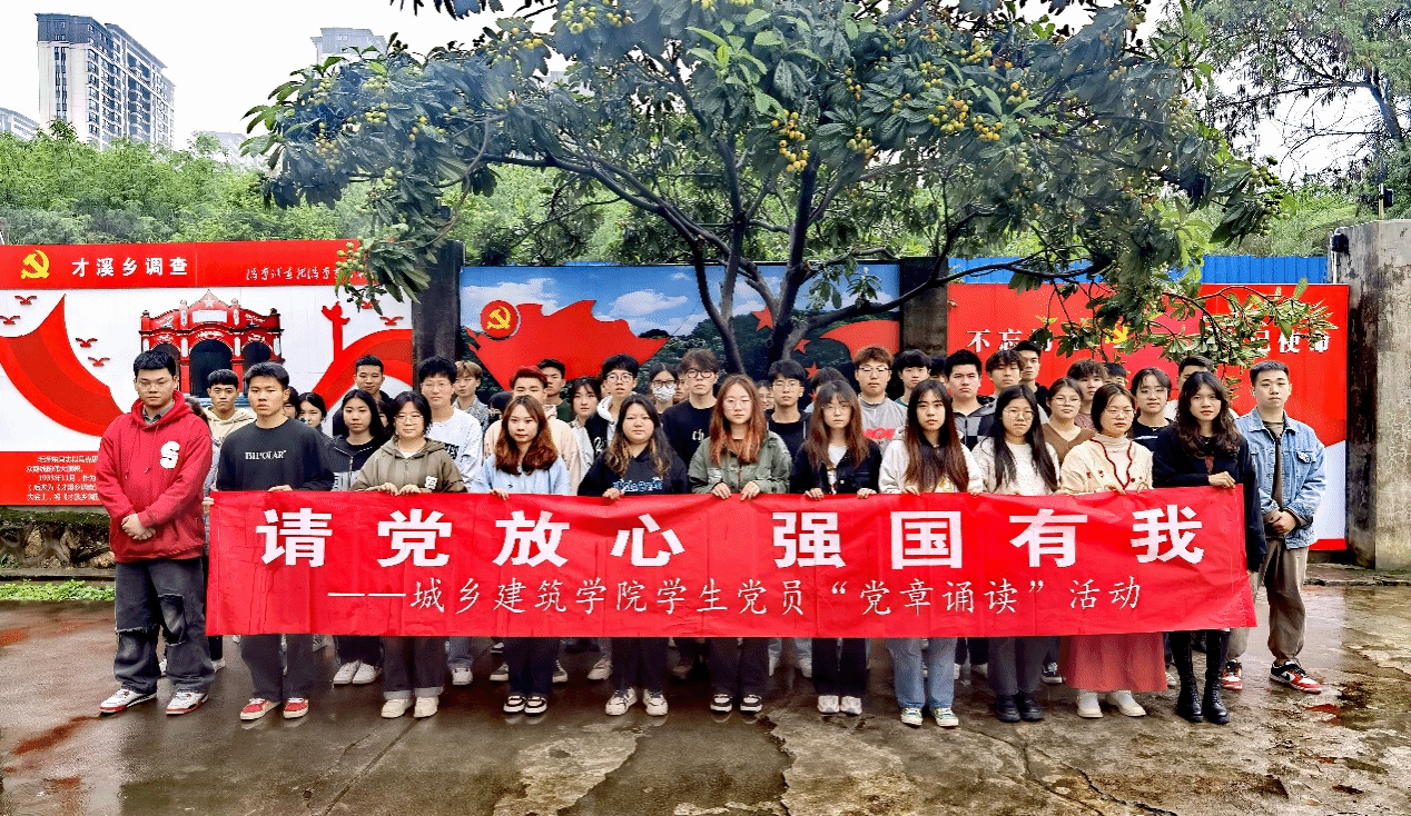 活动采取个人诵读、集体朗诵、重温誓词等多种形式开展。城乡建筑学院党委副书记、院长林茂才和7位学生预备党员、入党积极分子分别上台诵读《中国共产党章程》总纲内容,全体人员集体朗诵党员必须履行的义务和党员享有的权利,在院党委组织委员丘倩同志的带领下,重温入党誓词。活动结束后,全体人员在“城建红墙”前合影留念。