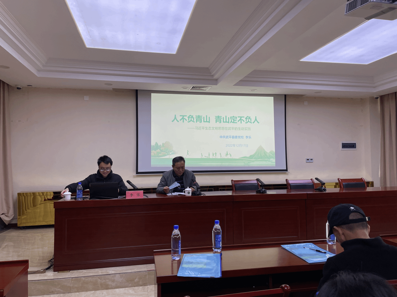 12月17日,在武平县委党校听取了福建师范大学马克思主义学院郑传芳教授的《党的二十大精神融入思政课》、中共武平县委党校李乐老师的《人不负青山,青山定不负人--习近平生态文明思想在武平的生动实践》、我校马克思主义学院林振东教授《讲好总书记在福建的故事 奋进新的赶考之路-学习党的二十大精神》等专题讲座和福建农林大学马克思主义学院黄秀玲副教授的《毛泽东思想及其历史地位》教学示范课。