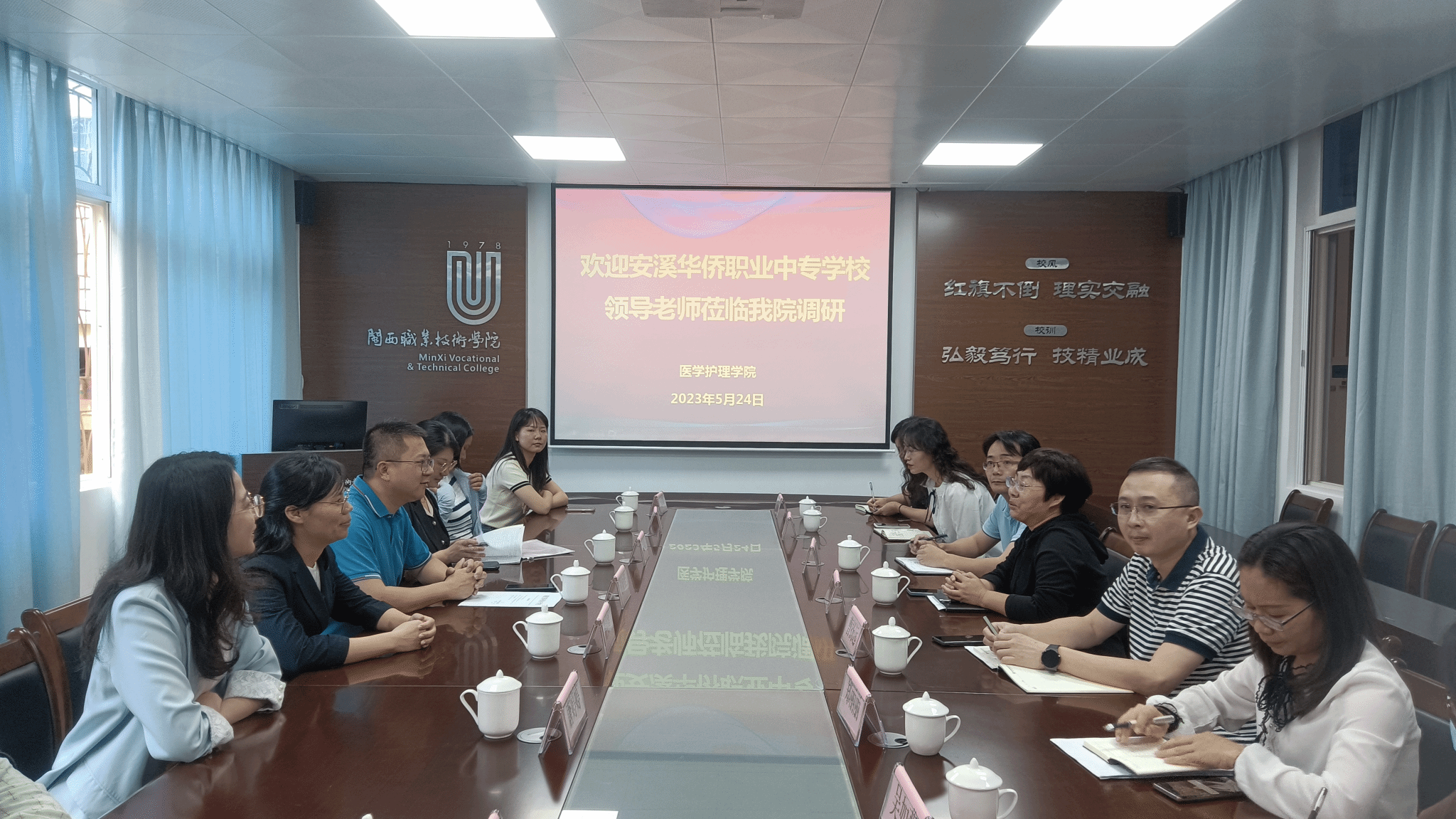 5月24日下午,福建省安溪华侨职业中专学校校长助理、社会事务教学部部长谢雨佳一行莅临医护学院调研交流,双方在医护学院办公楼101会议室举行座谈交流会,医护学院副院长、药学教研室及中药学教研室老师参加了座谈会。