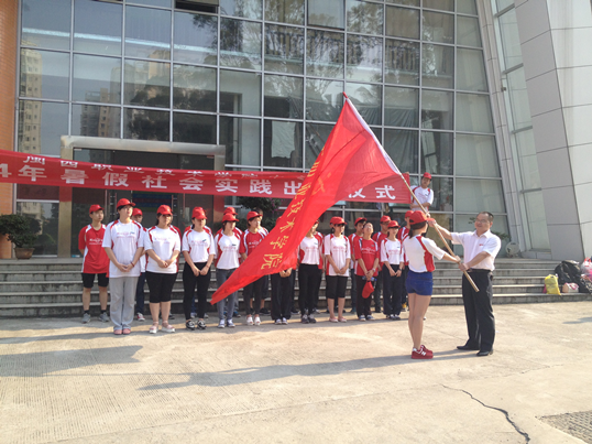 卢兆梅副院长出席了出征仪式并为社会实践活动服务队授旗。他希望大家积极投身社会实践,在实践中了解社会、增长才干、服务群众、服务社会,为建设美好家园贡献青春力量。