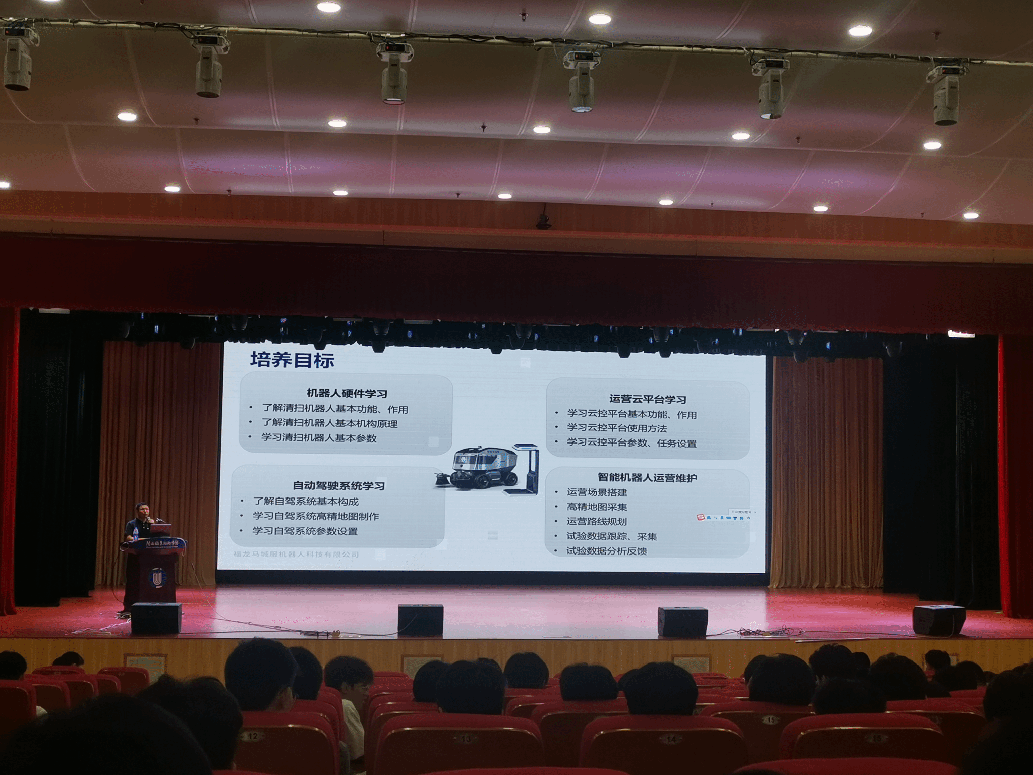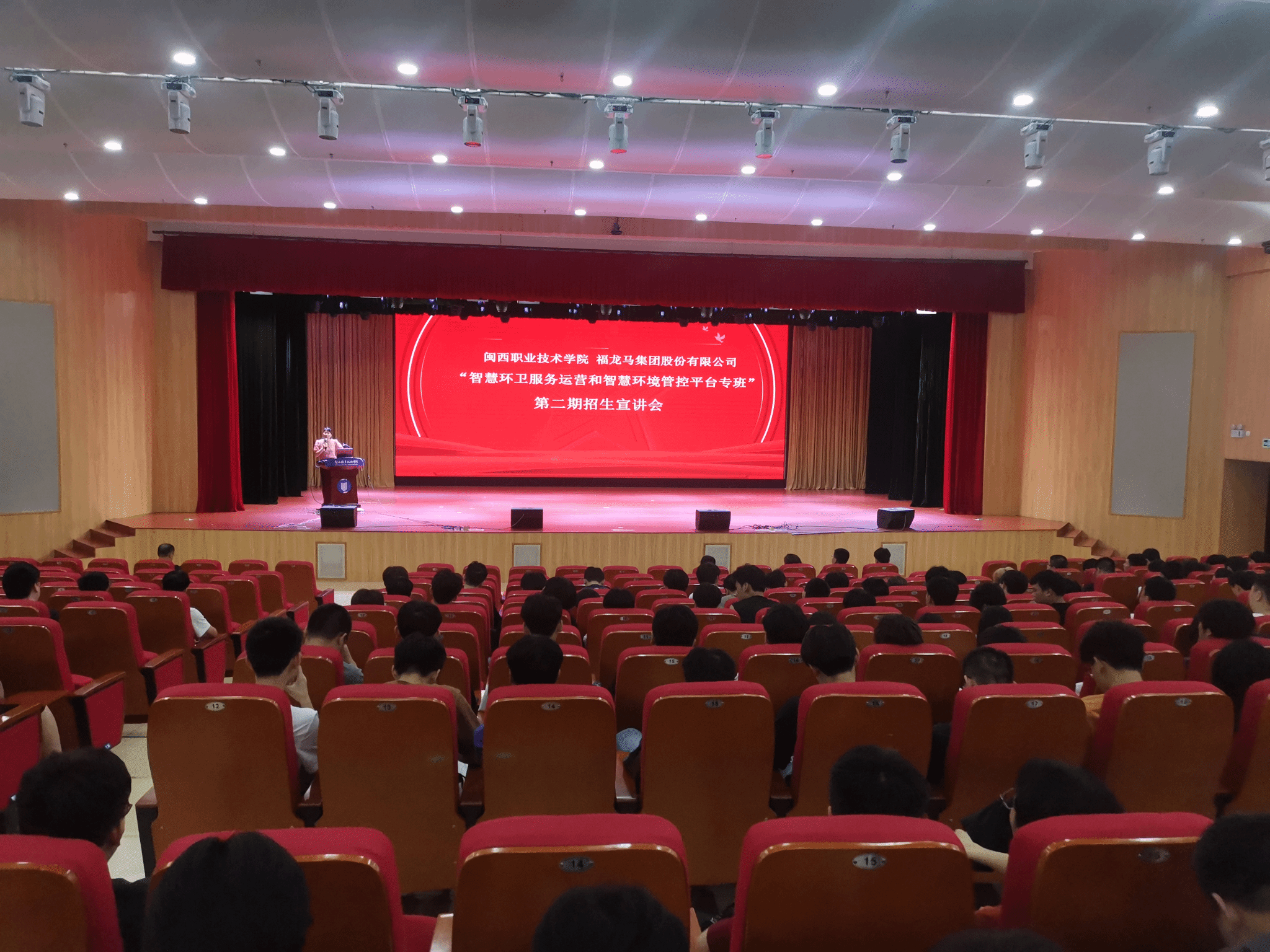 为发挥行业的资源优势,落实校企协同育人,优化人才培养模式,提升人才培养质量,2023年9月13日,智能制造学院与福龙马集团股份有限公司联合开设的“智慧环卫服务运营和智慧环境管控平台专班”第二期招生宣讲会在大匠堂举行。