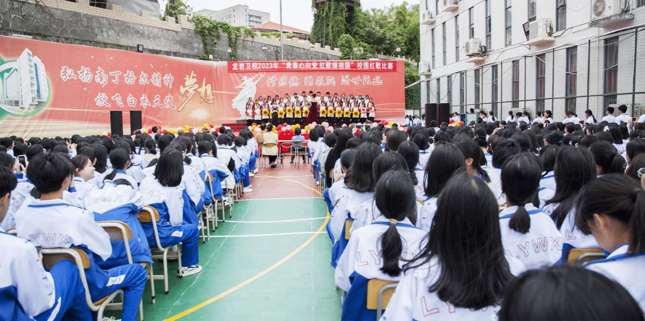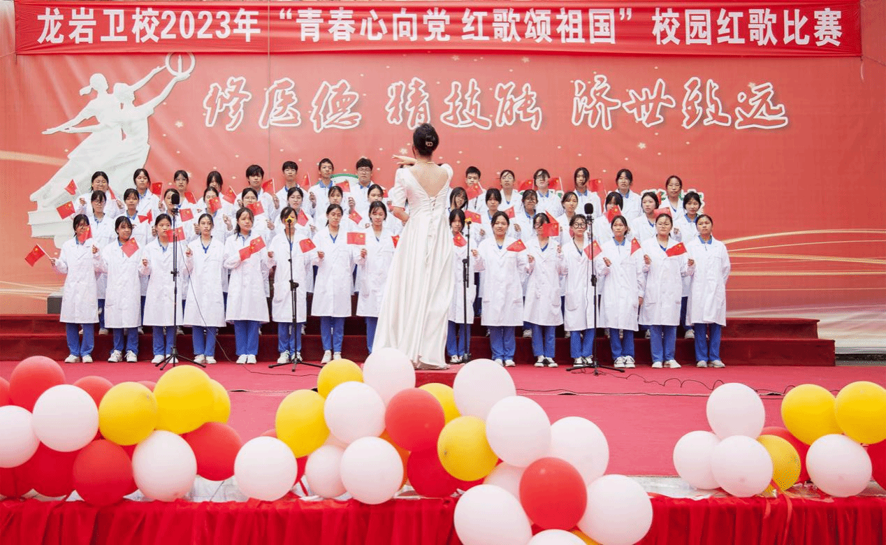 为庆祝新中国成立74周年,讴歌伟大祖国所取得的辉煌成就,展现卫校青年学生积极向上、朝气蓬勃的精神风貌,10月11日-12日,龙岩卫校“青春心向党 红歌颂祖国”校园红歌比赛在校篮球场举行。校领导、部分老师、全体在校学生共1100余人参加了活动。