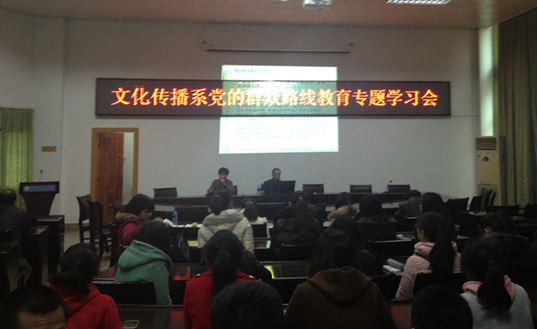 近日,文化传播系党总支在行政楼二楼会议室举行党的群众路线教育专题报告会。思政部副主任(主持工作)林振东副教授作《党的群众路线》专题报告会。文化传播系全体党员、学生预备党员、发展对象、入党积极分子等近80人聆听了报告。