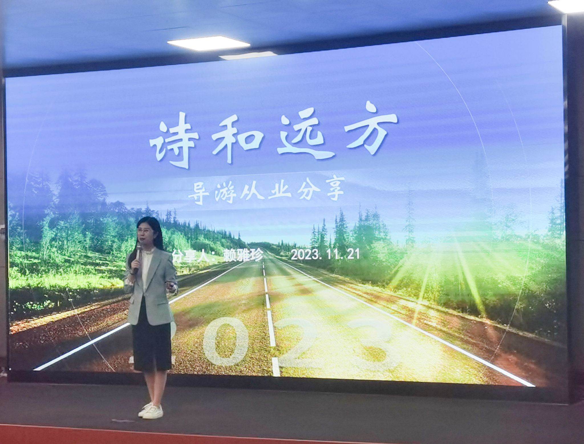 11月21日下午,文化与旅游学院旅游管理专业在3D导游实训室举办《诗与远方——导游从业分享》新生行业认知讲座,学院师生100余人参加。