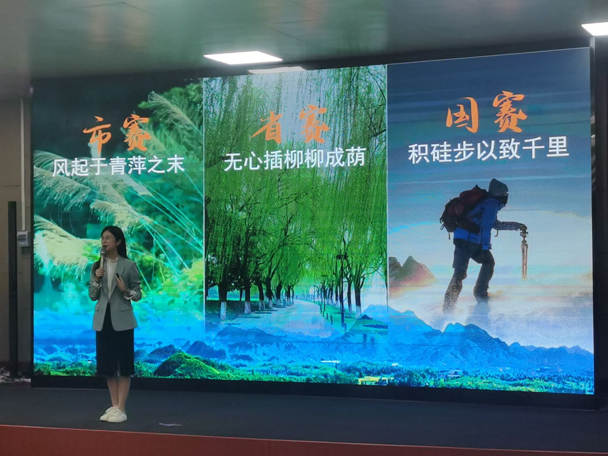 本次讲座特邀2023年全国导游大赛20强、铜奖获得者赖雅珍进行导游从业经历以及比赛经验的分享。赖雅珍老师从“选择旅游管理专业的理由?”“你心中的导游形象?”“你未来的职业选择?”这三个问题入手,与同学们进行良好的互动。她还通过分享自己的专业学习经历、从业经历和比赛经历,展示了一个旅游人的成长历程,传授了“积跬步以至千里”的人生经验,还鼓励同学们向梁芷芮(从普通中职学生成长为2023年全国导游大赛20强、铜奖获得者)学习。