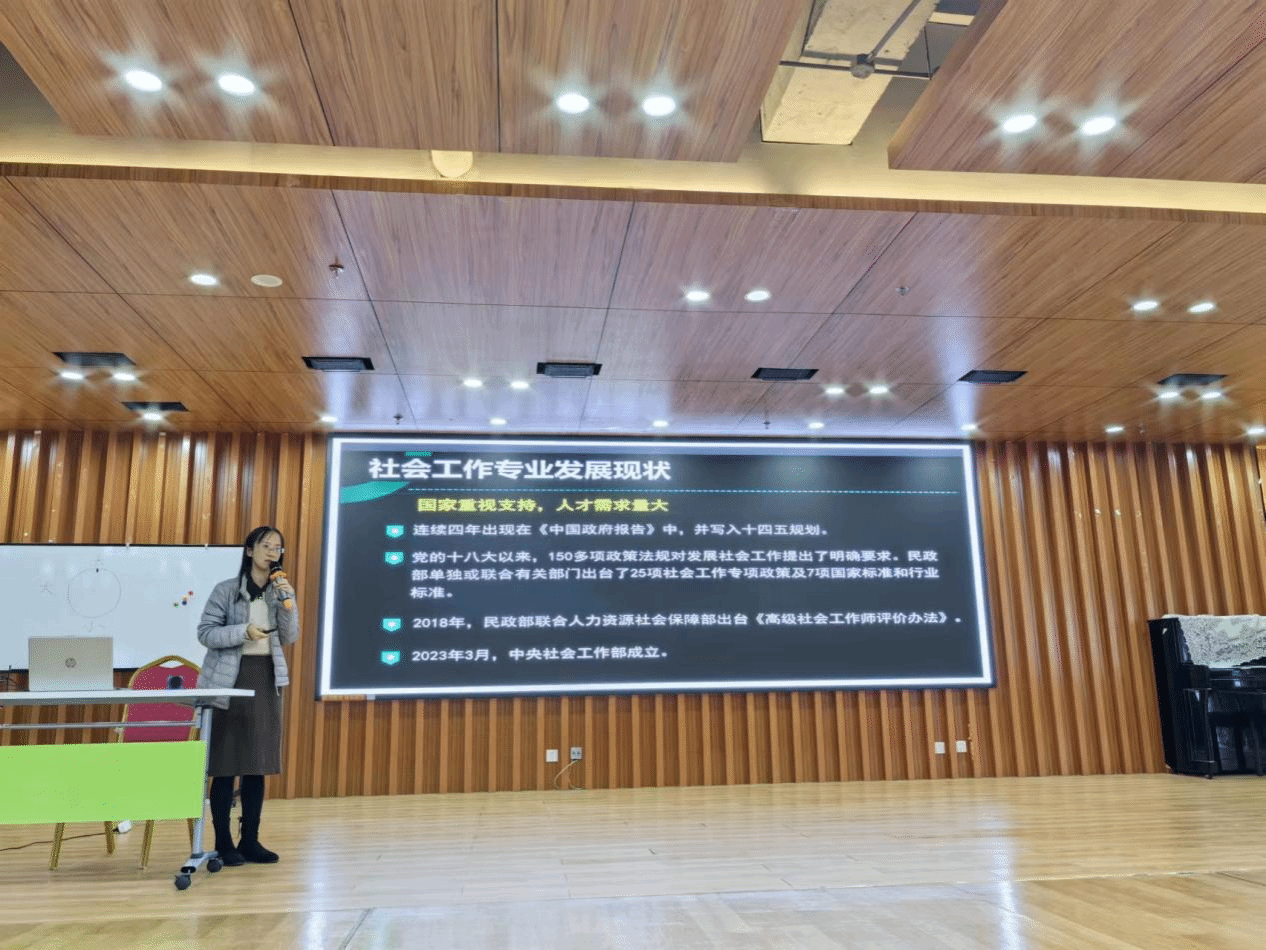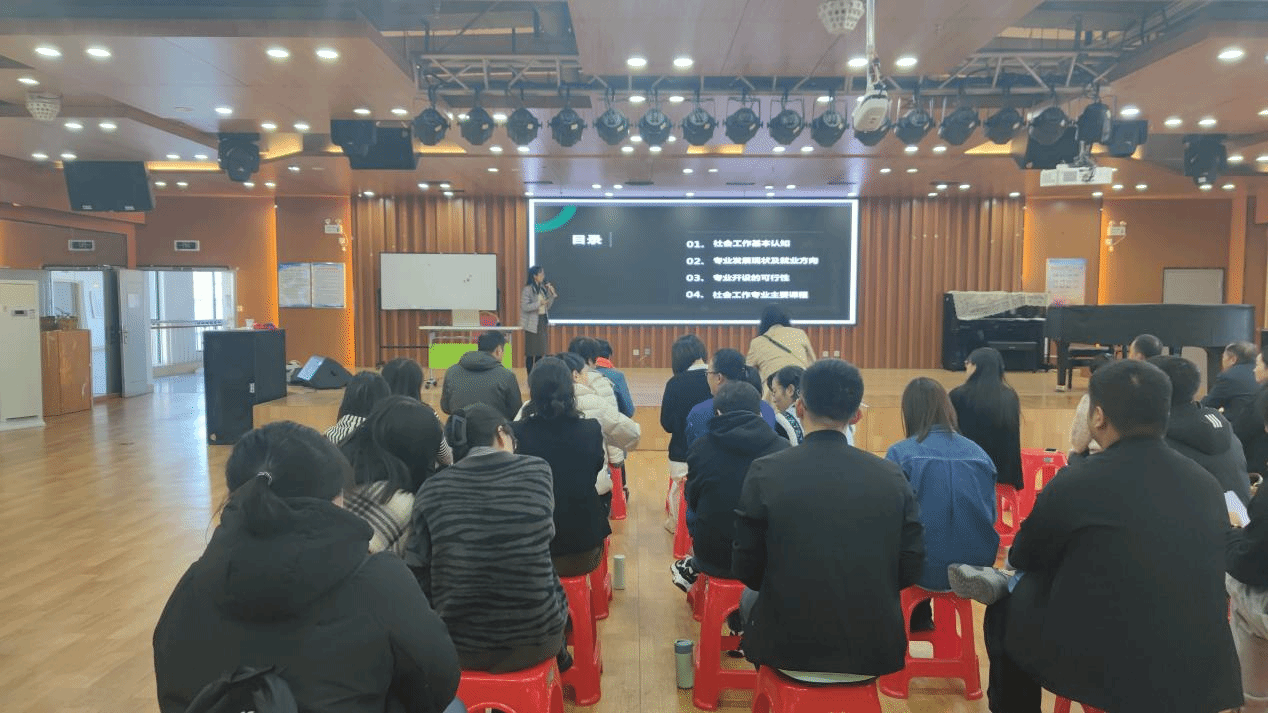 为了普及全院教师对“社会工作”新专业的认知,转变教师观念,更好地完成新专业教师转型,2023年11月21日下午,教育与艺术学院在岩声楼多功能厅开展了一场全院教职员工参加的“社会工作”新专业的认知讲座。