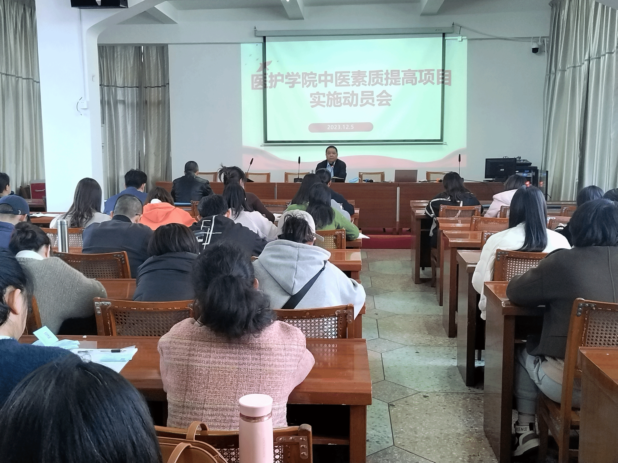 12月5日下午,医护学院召开全体教职工大会,会上党委副书记、院长作中医素质提高项目实施动员。