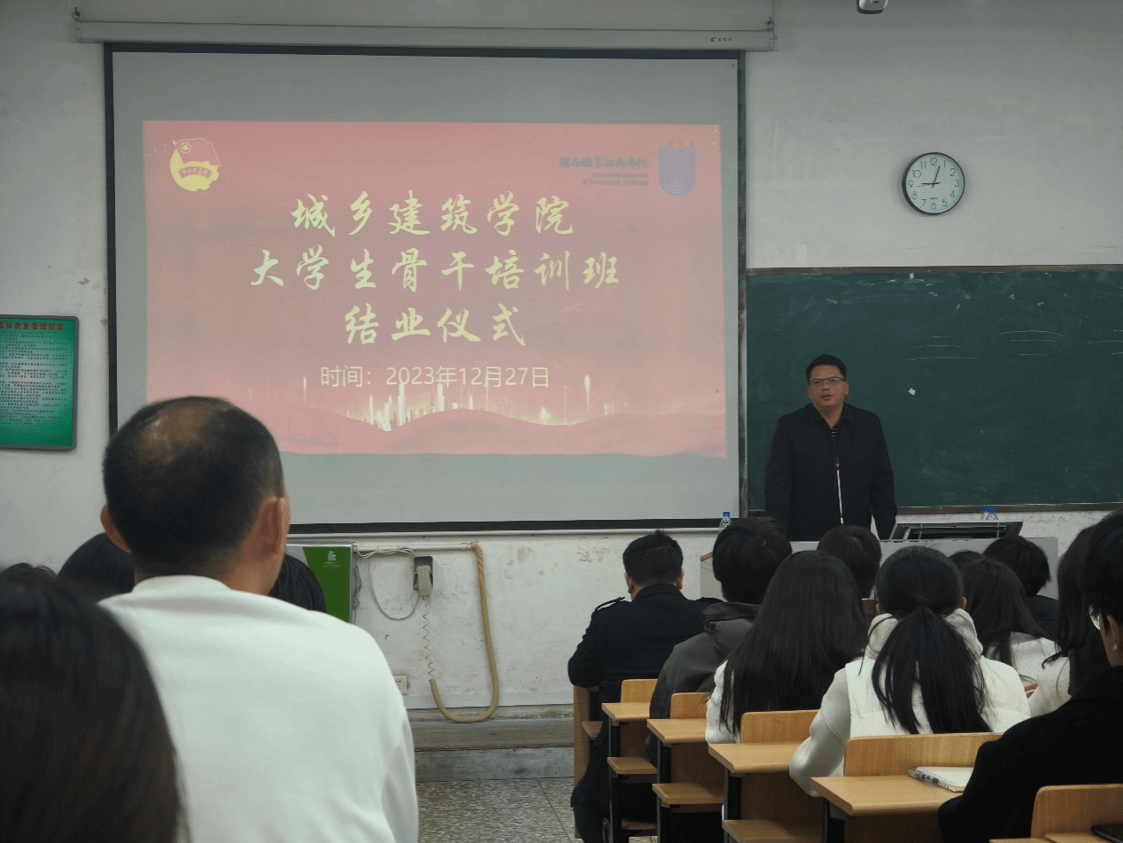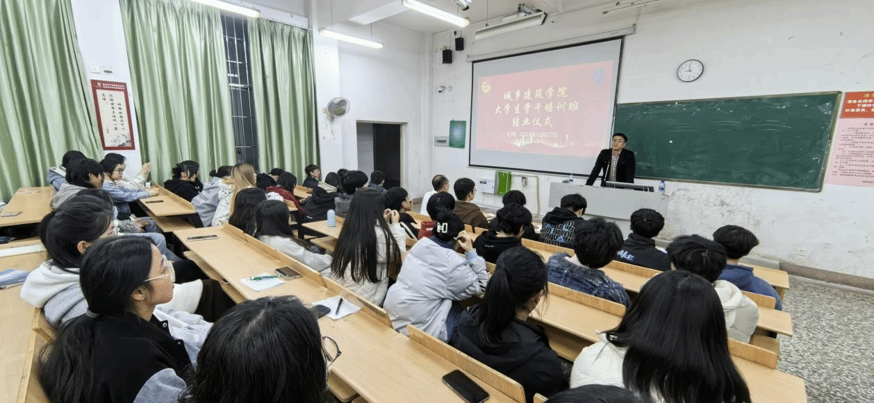 12月27日,城乡建筑学院首届学生骨干培训班结业仪式在良材楼阶梯教室举行。院长林茂才、院党委副书记何煊强、院团委副书记邱志国,院两委干部、干事以及2022、2023级各班班长、团支部书记参加。