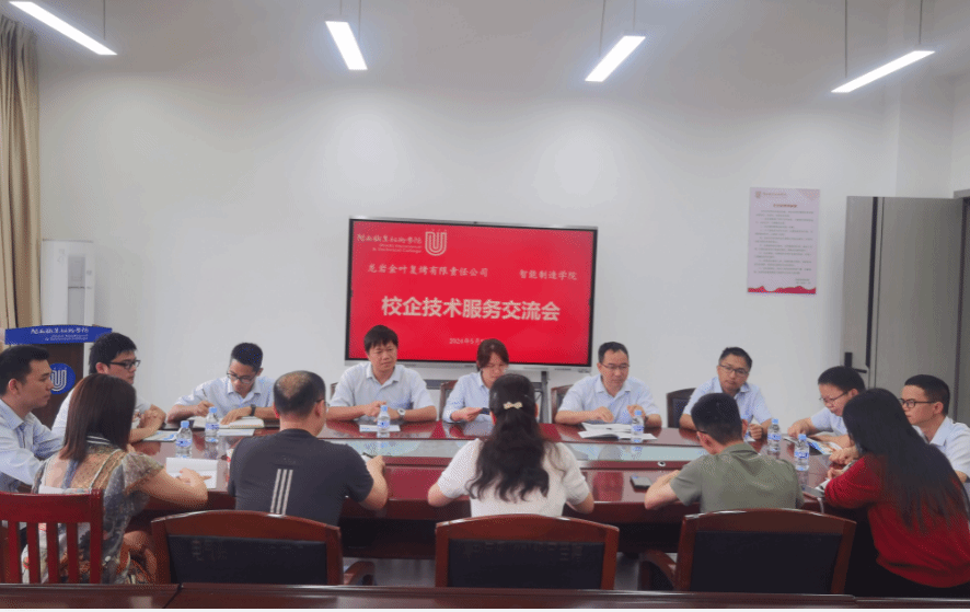 在新质生产力创新与校企产教融合日益加深的背景下,5月9日,福建省龙岩金叶复烤有限责任公司生产部卢禹雯副书记与钟练肇副主任率队来智能制造学院洽谈交流校企技术服务合作项目。企业电气、机械等班组长,智能制造学院领导及相关专业主任参加座谈。